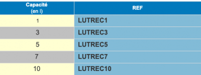 • Disponible en 5 capacités : 1 litre, 3 litres, 5 litres, 7 litres et 10 litres